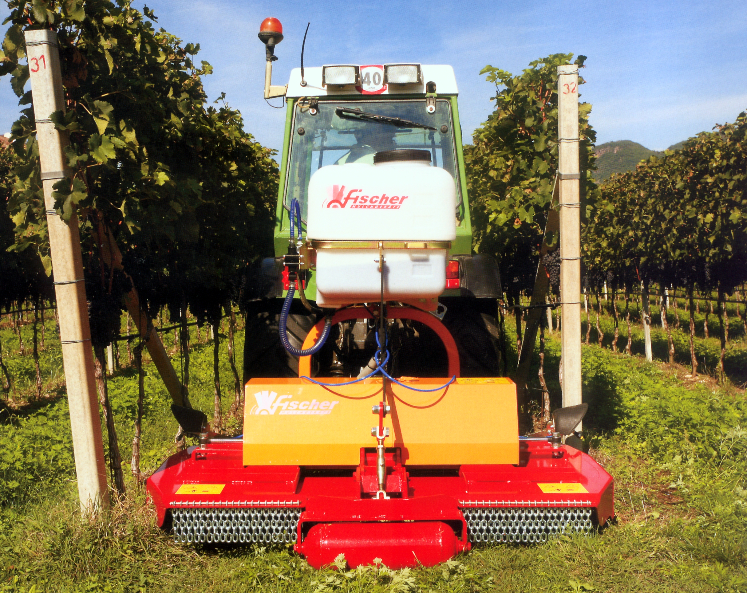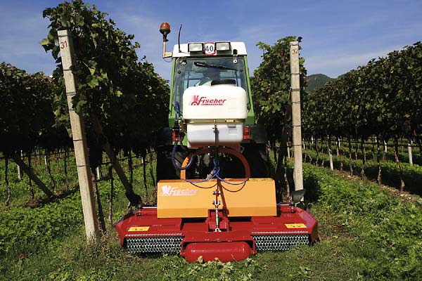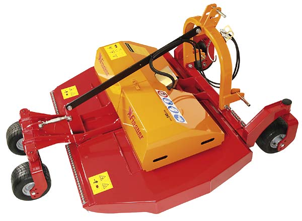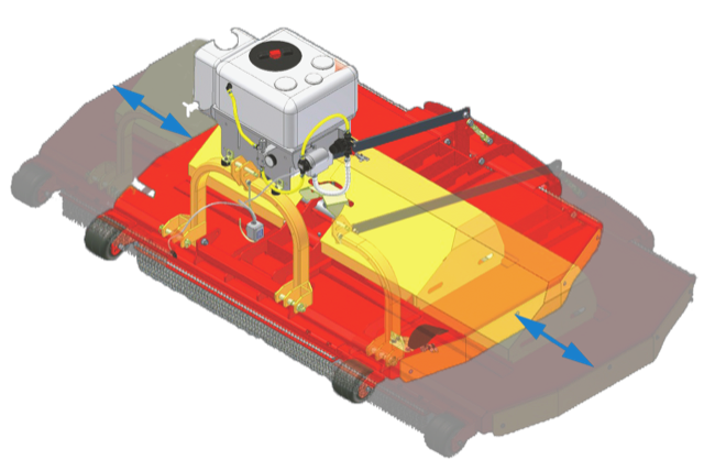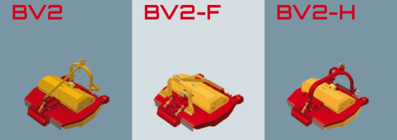 Kosiarka z regulowana szerokością pracy. Jendna przekładnia umiejscowiona centralnie połączona na sztywno z dwiema bocznymi zamontowanymi na ruchomych, rozsuwanych symetrycznie skrzydłach. Dzięki temu oba ramiona noży znajdują się zawsze w tej samej pozycji w stosunku do siebie. Nie ma ryzyka zderzenia się noży nawet w najwęższym ustawieniu. Model BV2 ma możliwość zamontowania czujników na krańcach bocznych aby regulacja szerokości odbywała się dynamicznie, w zależności od rostawu rzedów. Mozliwe jest takie skonfigurowanie koisarki, aby przy zdemontowanych osłonach bocznych noże wyrzucały skoszoną trawę na zewnątrz bezpośrednio pod korony drzew. Kosiarka ma także możliwość zamontowania dodatkowych narzędzi podkaszających bądź odchwaszczających np. głowica żyłkowa, rollhacki bądź gwiazda opielająca).