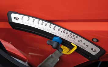 Dawka wysiewu jest ustawiana na dużej, proporcjonalnej skali (DfC) i może być bezstopniowo regulowana od 3 kg/ha. Skala DfC pozwala na dokładną regulację dawki wysiewu bez konieczności stosowania dodatkowych środków. Zwiększenie wartości na skali o 10% oznacza zwiększenie ilości wysiewanego materiału również o 10%. Taki rozwiązanie znacznie ułatwia i przyśpiesza regulację rozsiewacza w przypadku zmiany pola.