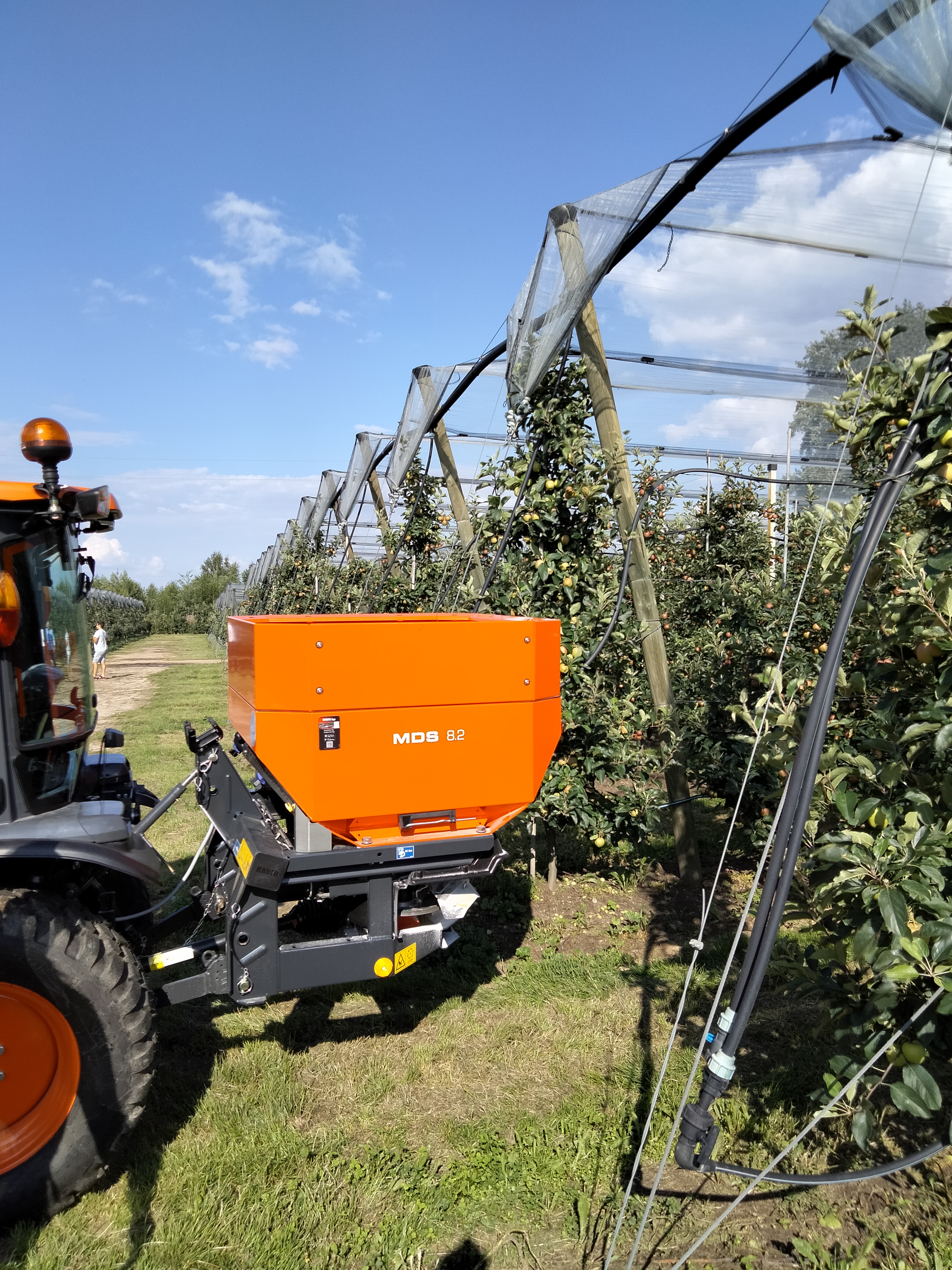 Przystawka RV2M umozliwia skierowanie strumienia nawozu bezpośrednio pod korony drzew lubkrzewy w pasie ok 100 cm szerokości. Takie rozwiazanie nie tylko pomoże zmniejszyć koszty nawożenia ale także eliminuje nadmiernie szybki wzrost trawy w międzyrzedziach a więc zmniejszyć częstotliwość koszenia.