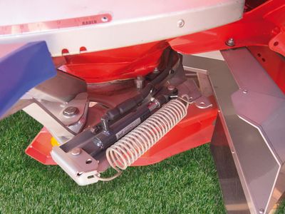Wolno obracające się mieszadło (180 obr./min) zamontowane jest na wale wykonanym z wysokiej jakości stali nierdzewnej. Dzięki mniejszym niż na talerzach obrotom nawóz przemieszczany jest do wylotu płynnie i delikatnie. Specjalny kształt zasuwy ułatwia dozowanie mniejszych (3 kg/hektar) i większych dawek nawozu, jak również innych produktów, takich jak preparat przeciw ślimakom lub drobne nasiona.