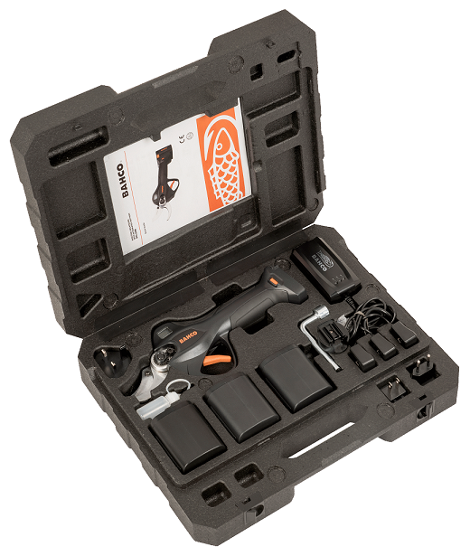 Sekatory elektryczne firmy Bahco należą do grupy profesjonalnego sprzętu wykorzystywanego w pracach sadowniczych oraz szkółkarskich. Ostrze wykonane z chromowanej stali o zakresie cięcia 37 mm a także 25 mm za co odpowiada dwustopniowe otwieranie ostrza. Czas pracy sekatora wynosi 8 godzin na dwóch bateriach o wadze 0.345 kg które są dołączone w zestawie. Ekran Smart pozwala kontrolować stan baterii i ilość cięć. Seaktor dostosowany zarówno dla osób praworęcznych jak i leworęcznych. Poręczny sekator o długości 290 mm i wadze 2.6 kg. Czas ładowania sekatora wynosi 2.5 h. bateria Li-lon