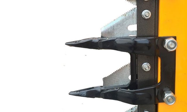 Górna listwa tnąca o długości 120 cm jest uchylna. Powrót odbywa się za pomocą układu hydraulicznego bądź mechanicznie. Stopień pochylenia górnej listwy także regulowany jest ręcznie bądź hydraulicznie.