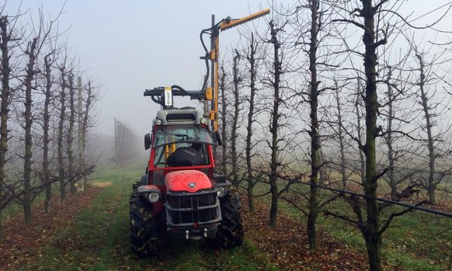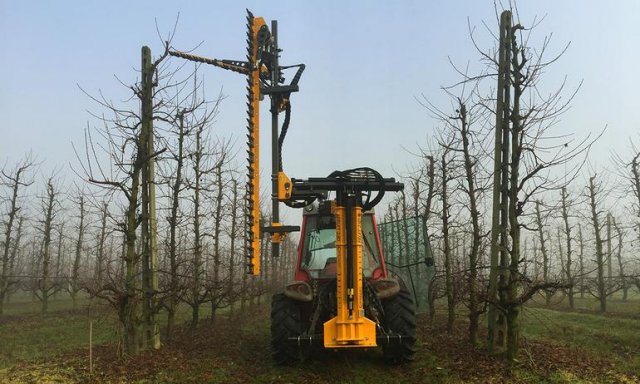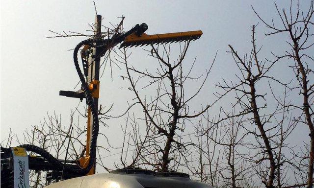 Listwa tnąca Orizzonti FRUIT skonstruowana od początku z myślą o wykorzystaniu w sadach owocowych. Zęby tnące w systemie Sch-Cut PRO umożliwiają cięcie konarów o średnicy do 40 mm. Model FRUIT produkowany jest w wersji z listwą pionową 250 cm oraz 300 cm. Obie wersje można wyposażyć w uchylną górną listwę o regulowanym pochyle oraz dolną listwę podcinającą co umożliwia zastosowanie urządzenia w sadach o wysokości drzew nawet 4,5 m. Do poprawnej pracy maszyny potrzebny jest ciągnik wyposażony w pompę o wydajności minimium 30 l/min i ciśnieniu 180 bar. Sterowanie odbywa się za pomocą komfortowego joysticka zamontowanego w kabinie ciągnika. Maszyna może być agregatowana zarówno na przednim TUZ ciągnika jak i bezposrednio na ramie po uprzednim zamontowaniu dedykowanego gniazda montazowego kompatybilnego z innymi urządzeniami marki Orizzonti takimi jak wygarniacz gałęzi lub maszyny do mechanicznego zwalczania chwastów.