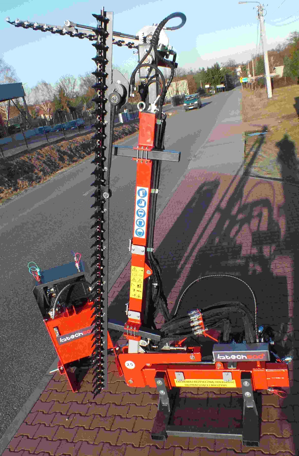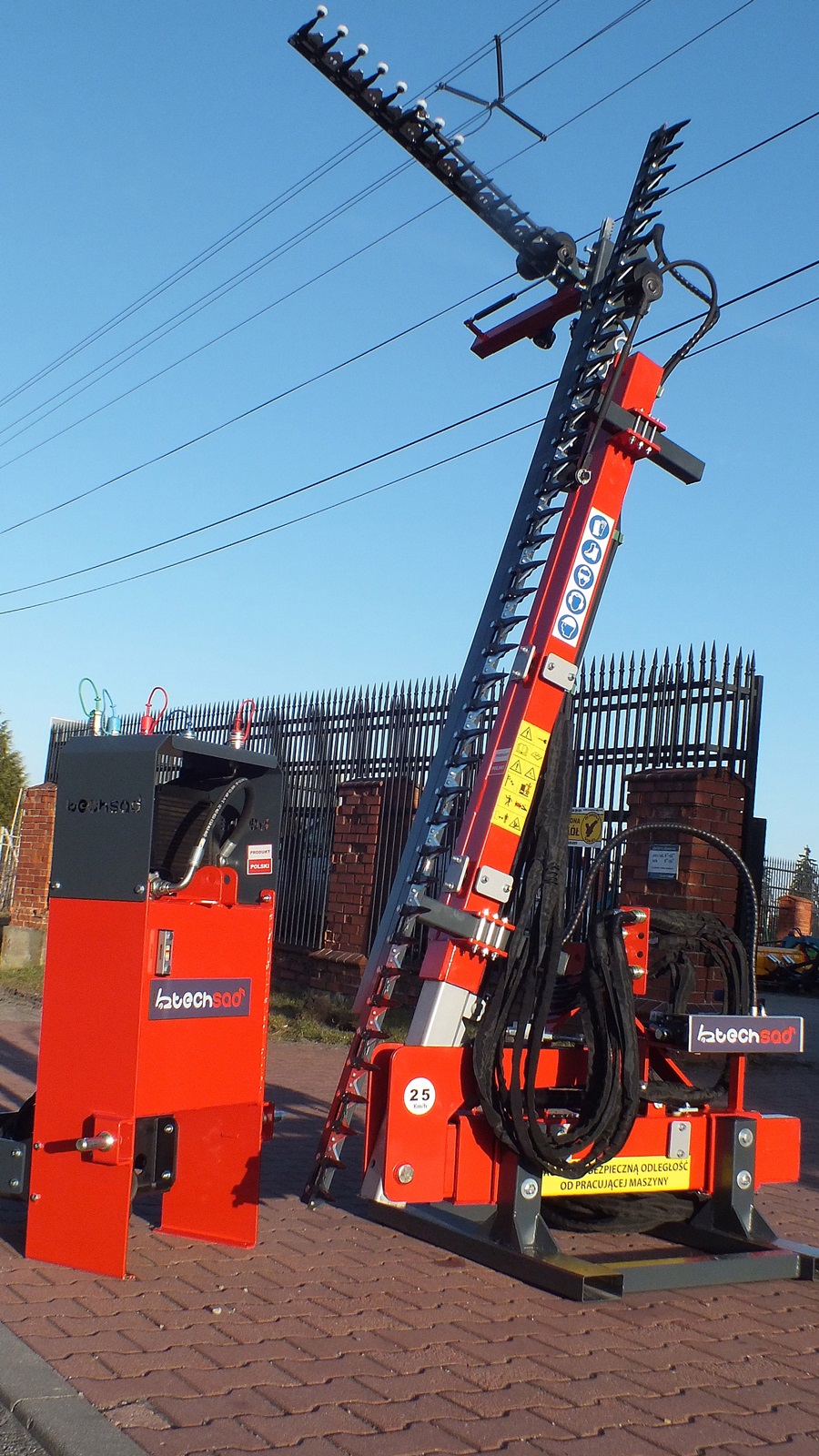 LST3000Profesjonalna sadownicza listwa do formowania koron drzew owocowych w własnym agregatem olejowym napędzającym układ hydrauliczny urządzenia. Wyposażona w dwie listwy tnące: pionową o długości 300 cm i poziomą o długości 90 cm. Obie listwy napędzane są silnikami hydraulicznymi. Listwa górna odchyla się przy kontakcie ze słupem lub przeszkodą a jej powrót do pozycji roboczej umożliwia mocna sprężyna gazowa. Pochył górnej listwy można regulować hydraulicznie za pomocą siłownia a zakres pochyłu wynosi od -90 do + 90 stopni, co oznacza, że może ona pracować także zupełnie w pionie, zwiększając zakres cięcia listwy poziomej. Wysokość górnej listwy można zmienić ręcznie w zakresie 120 cm i dodatkowo skorygować z kabiny o dodatkowe 50 cm.